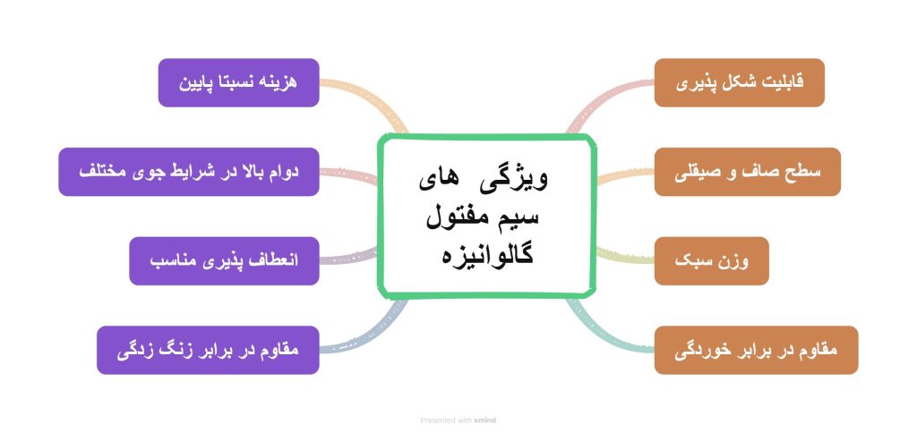 | گالوانیزه | پوشش روی (Zn)، مقاوم در برابر رطوبت و زنگزدگی | · فنسکشی و حصارکشی